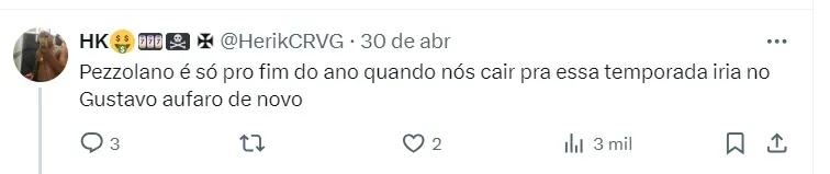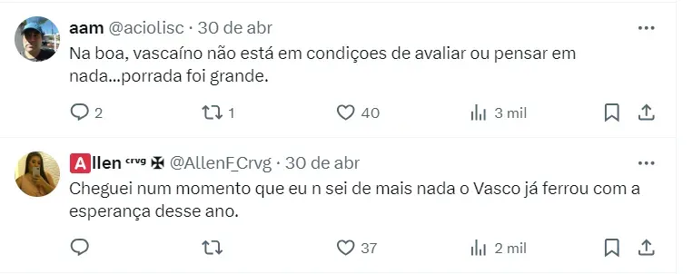 “O Vasco ganha do Vitória e depois toma duas porradas contra Flamengo e Palmeiras. Só aí serão 8 rodadas. A chance de chegar com 9 pontos em 12 rodadas é grande”, completou o ídolo vascaíno.