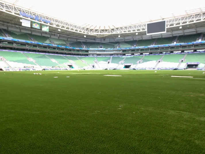 Elenco de série famosa marca presença no Allianz e agita torcida do Palmeiras