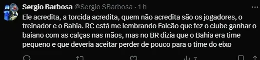 Além disso, Dorival elogiou o Bahia, que tem sido gerido pelo Grupo City desde o final de 2022. Ele destacou o progresso que o clube tem feito e elogiou o trabalho duro e a dedicação que levaram a esse crescimento.