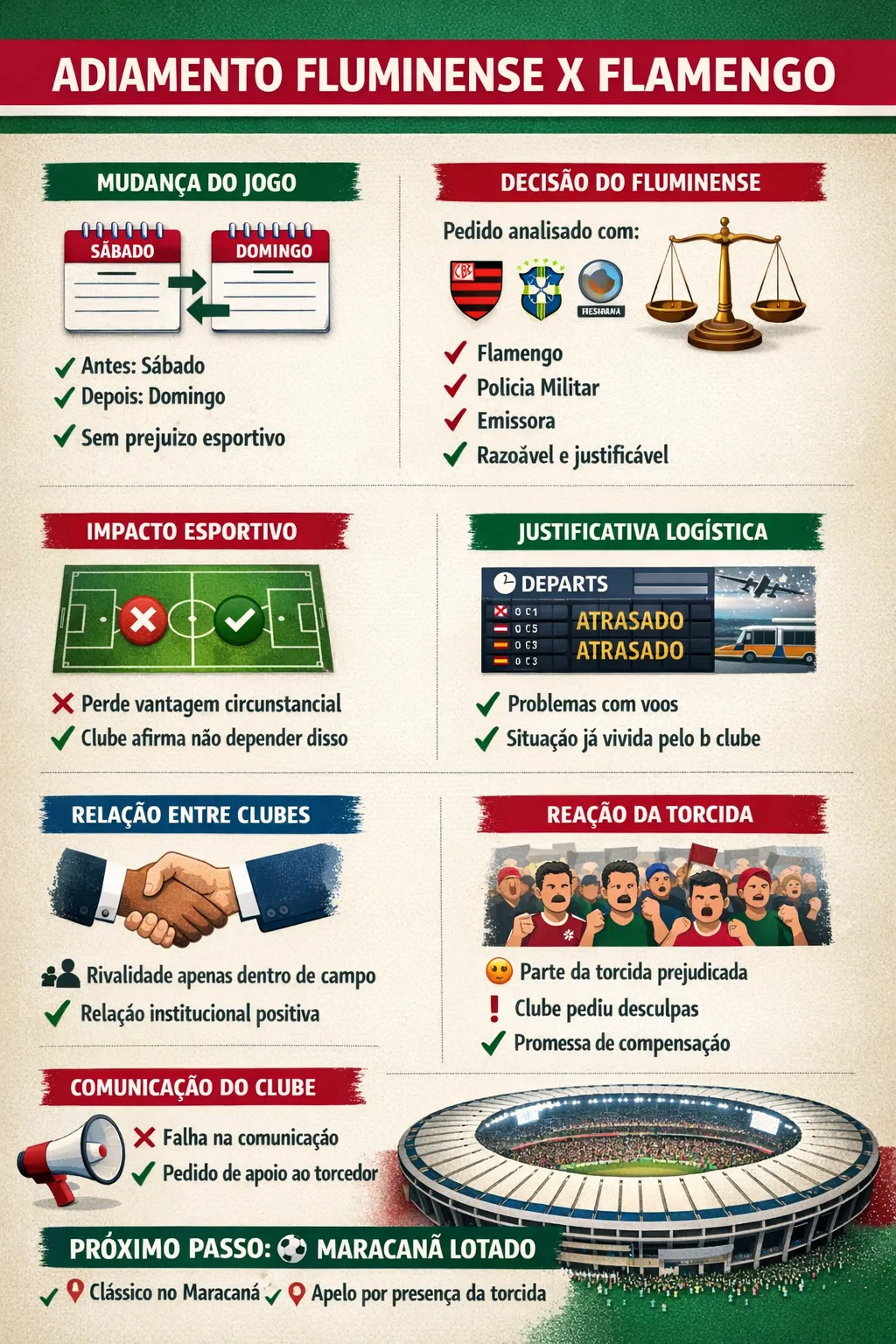 Além disso, Montenegro reconheceu que o clube abriu mão de uma vantagem circunstancial diante do rival. “O Fluminense de fato deixa de ter uma vantagem em relação ao rival por conta de um problema de logística dele”.