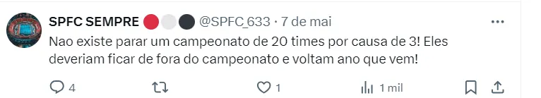 No entanto, a escolha de não paralisar completamente o Brasileirão tem gerado debate e controvérsia, com alguns questionando a sensibilidade da medida diante da magnitude da tragédia.