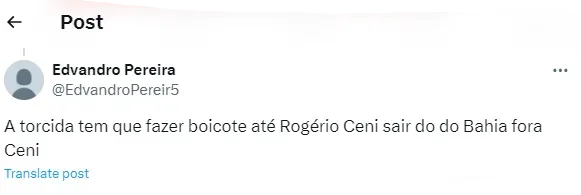 Ainda citando o embate em questão, depois de ver o time ‘pipocar’ em casa, a torcida não titubeou e apontou um culpado para esse revés: o comandante Rogério Ceni. Sendo assim, os seguintes comentários contra o treinador vieram à tona (SIC).