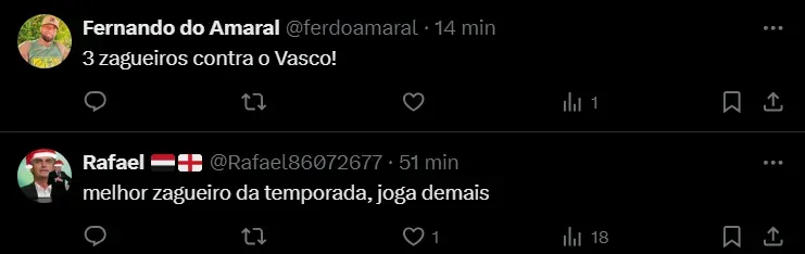 Com as dores musculares, o zagueiro ficou no banco de reservas contra o Corinthians e aproveitou para cavar um cartão amarelo para zerar sua contagem. Afinal, o jogador já sabia que não teria condições de enfrentar o Cuiabá.