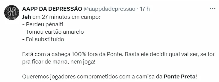 Vale ressaltar que o jogo poderia ter ido para outro caminho. Dado que quando o placar ainda estava zerado, a Ponte Preta teve um pênalti a favor. Contudo, Jeh foi para a cobrança e acabou desperdiçando a oportunidade. Logo após a polêmica da permanência.