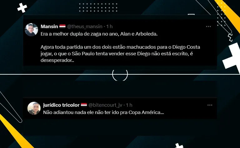 Em resumo, o atleta apresentou desgaste muscular contra o Cuiabá e por isso fica de fora contra o Vasco. Sendo assim, Alan Franco e Diego Costa vão formar a dupla de zaga do Tricolor.