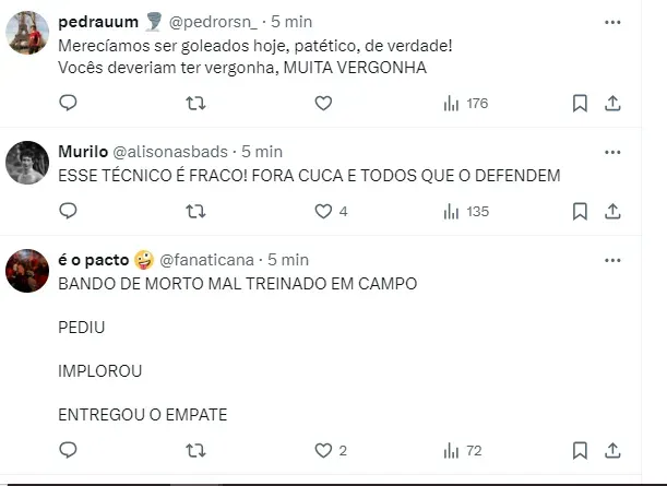 Nas redes sociais a torcida athleticana criticou o desempenho da equipe após ‘sufoco’ levado. Julimar e Pablo foram os mais ‘detonados’, porém alguns torcedores pediram a saída de Cuca. “Merecíamos ser goleados hoje, patético, de verdade! Vocês deveriam ter vergonha, MUITA VERGONHA”, disse um torcedor. “ESSE TÉCNICO É FRACO! FORA CUCA E TODOS QUE O DEFENDEM”, comentou outro.