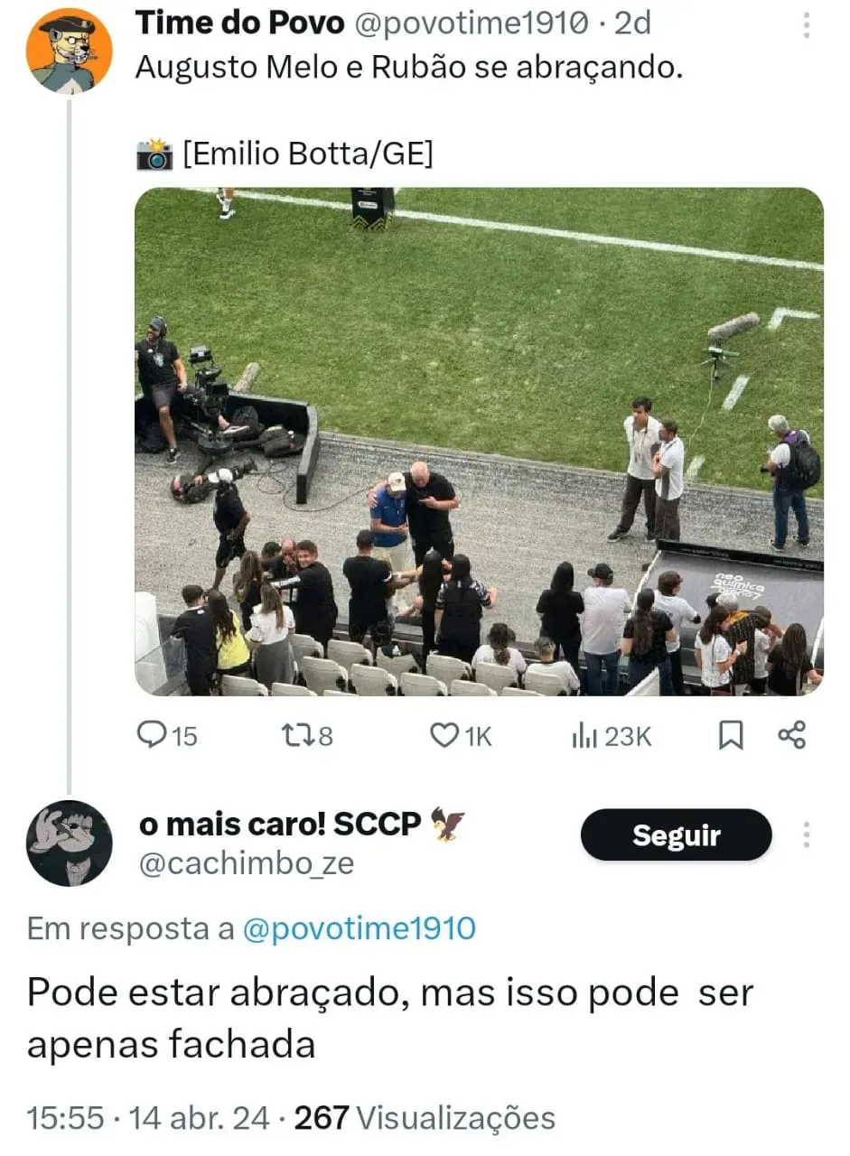 Mas para além do desempenho dentro das quatro linhas, outro assunto rendeu polêmica nos últimos dias. Isso porque Casagrande revelou que Augusto Melo e Rubão vivem conflito no Corinthians.
