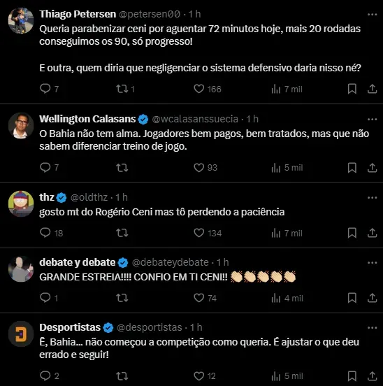 O Bahia tinha todas as condições para sair vitorioso na estreia do Brasileirão. Agora a questão cai no colo do técnico Rogério Ceni, que vem recebendo severas críticas dos torcedores.