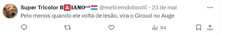 O jogador sofreu uma fratura na costela em uma partida contra o Botafogo, o que o afastou dos gramados desde o jogo contra o Red Bull Bragantino. A ausência do atleta, peça-chave no esquema tático de Rogério Ceni, obrigou o técnico a buscar novas opções para o comando de ataque.