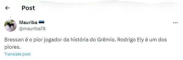 “Bressan é o pior jogador da história do Imortal. Rodrigo Ely é um dos piores“. “Esse cara é um baita bagre, tem que sumir do time o quanto antes!”. “Esse é ruim demais, nossa direção estava maluca quando fechou essa contratação”.