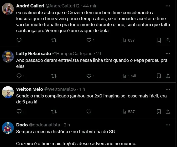 Então, após a partida, Calleri rasgou elogios para o Cruzeiro e ressaltou que desde que está no Brasil foi um dos jogos mais complicados. Além disso, falou sobre o desempenho da Raposa mesmo com um a menos.
