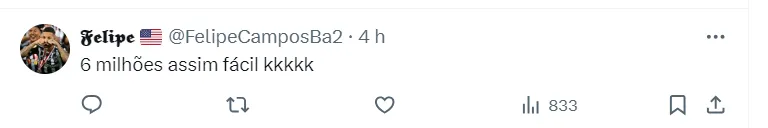 Apesar da controvérsia em torno dos investimentos perdidos, o meio-campista reagiu com bom humor à promessa do rapper, assegurando ter “printado” a declaração como forma de garantia.
