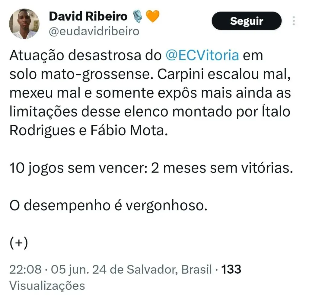 Torcida se revolta após empate e pede demissão de Ítalo Rodrigues: “Saiam do Vitória”