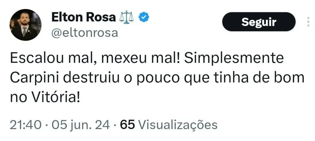 “Eu não posso ter escalação ousada, preciso somar e recuperar meus atletas emocionalmente e tecnicamente. Tivemos muitos desfalques, e talvez se tivéssemos somados um ponto contra o Atlético-GO a gente estaria lamentando menos essas situações das rodadas anteriores. Vejo que a gente tem tentado ajustar o que tem de melhor dentro do que entende que vai ser melhor para o Vitória em cada partida.”, prosseguiu.