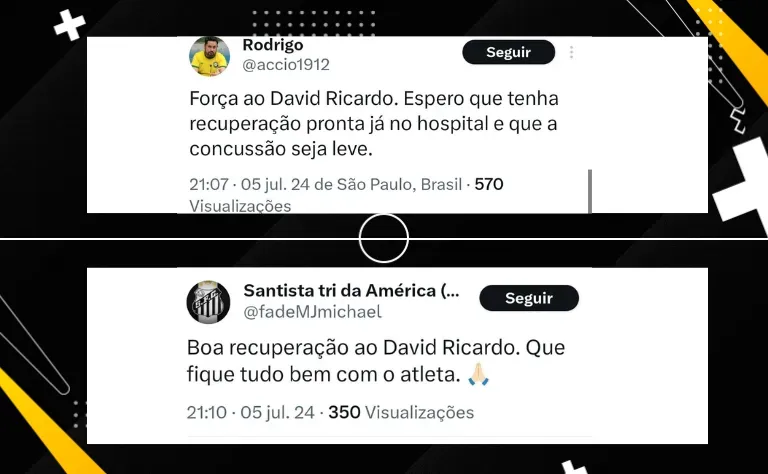 Torcedores usaram as redes sociais para desejar forças ao jogador. O Santos também emitiu uma nota informando a condição do zagueiro e desejando uma pronta recuperação.