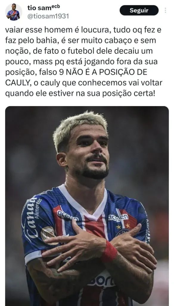 “É um jogador que tecnicamente é o dez nosso. Ele tem liberdade para jogar no campo todo. Posso garantir que é a melhor função que ele pode exercer. Hoje o jogo não fluiu, mas o Cauly é uma peça fundamental para meu sistema de jogo”, completou.
