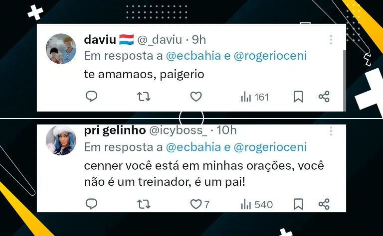 O técnico Rogério Ceni alimentou a expectativa e afirmou que a torcida deve sonhar. “Acho que nosso objetivo aqui é trazer alegria para o torcedor momentaneamente. O torcedor tem que sonhar com tudo que ele quiser, é de direito. Ainda mais do baiano, que tem a crença, a fé”, afirmou o treinador.