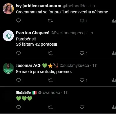 “Falamos de identidade, em DNA de Chapecoense, e é assim que o torcedor quer ver. O primeiro degrau ele foi alcançado, agora é descansar e celebrar a vitória”, disse o técnico Umberto Louzer, expressando sua satisfação com o desempenho da equipe.