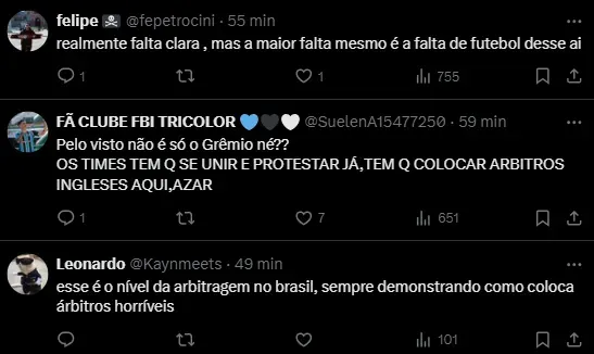 Apesar da gravidade da lesão, a arbitragem não marcou falta no lance. Além disso, o VAR, que tem o papel de revisar decisões controversas, decidiu que o incidente não necessitava de análise adicional.