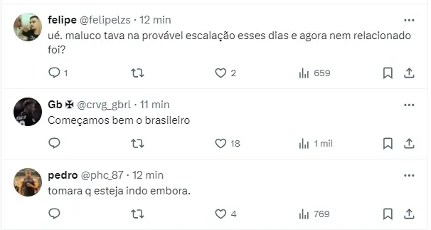 Nas redes sociais, a torcida vascaína ‘detonou’ o desempenho da equipe, em especial a utilização de Praxedes entre os titulares. Na web a chegada de reforços é vista como necessidade.