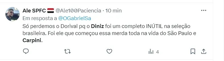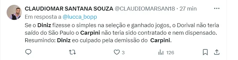 Diniz também aproveitou para abordar o contexto das demissões de técnicos no futebol brasileiro, mencionando a saída de Thiago Carpini do São Paulo e destacando a receptividade do país com treinadores estrangeiros, como Luis Zubeldía.