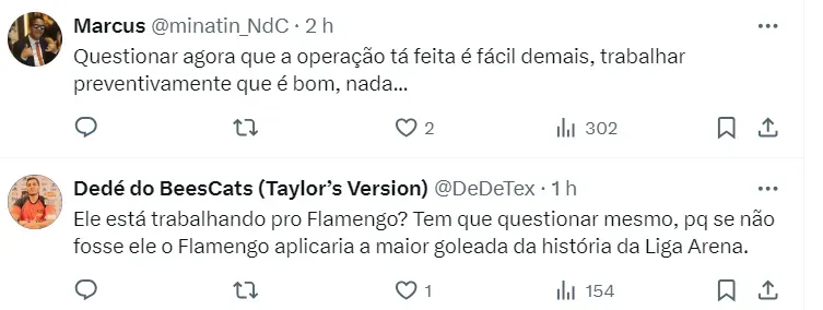André Mazzuco, diretor de futebol do Furacão, manifestou suas críticas à condução do jogo, especialmente nos momentos finais, após o gol marcado por Fernandinho.