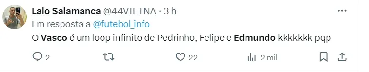 “A desculpa era que o CEO era Flamengo, o diretor esportivo não tinha experiência, o Barbieri… após a saída desses caras, (a expectativa era que) o Vasco estaria em um rumo diferente”, acrescentou.