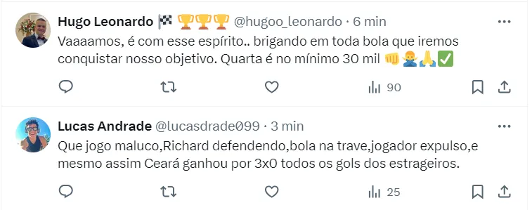 O triunfo do Vozão foi marcado por gols de Jorge Recalde, Facundo Barceló e Lucas Mugni, cada um evidenciando a eficácia do time cearense tanto no setor defensivo quanto no ofensivo. Com essa vitória, o Alvinegro conquista sua primeira vitória na competição e se posiciona temporariamente na 9ª colocação da tabela, somando 5 pontos.