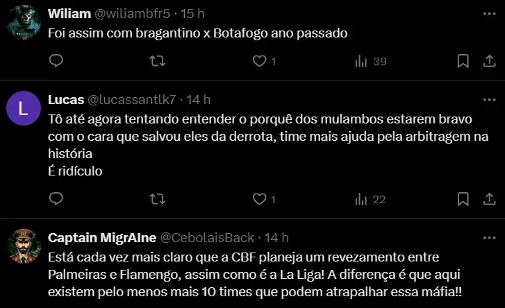 “Em um jogo tão importante, valendo a liderança do campeonato, a CBF escala um árbitro que está suspenso pela Conmebol por erros graves. Fica a pergunta, qual o critério?”, completou.