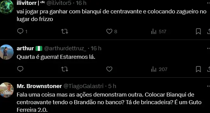 “A gente ainda precisa buscar isso, é uma busca interna, a gente sabe disso, desse equilíbrio em relação a comportamento de jogo, de não ter essas oscilações dentro do jogo, que foi o que a gente sentiu e viu no final do primeiro tempo. Todo mundo é ciente disso”, completou.