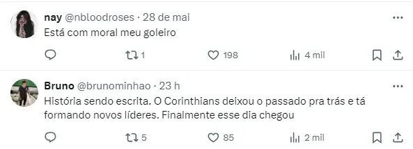 “Todos nós gostávamos muito do Cássio, mesma situação com o Paulo. As novas lideranças emergem. Como eu falei, elas não são impostas. Esse grupo não tem essa dificuldade, é um plantel de gente que gosta de aprender uns com os outros. Agora, sem Cássio e Paulinho, quero que preservem o Fagner. Ouço muito, mas é uma pessoa extraordinária, que se entrega de corpo e alma. Na minha opinião é top 3 do Brasil na posição. É um ídolo do clube por tudo o que já viveu e pelo respeito que tem do grupo”, afirmou.