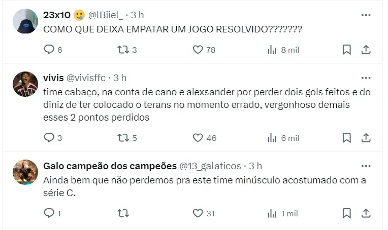 O técnico do Fluminense, Fernando Diniz, fez uma análise detalhada do empate por 2 a 2 contra o Atlético-MG, ocorrido em Cariacica pela 5ª rodada do Campeonato Brasileiro.
