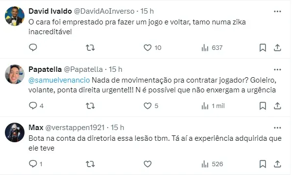 O arqueiro assumiu a responsabilidade do empate em declaração após o confronto. “Realmente, a minha falha acabou desestabilizando. Aceito, merecia. Assumo a responsabilidade”, disse o jogador em entrevista ao Globo Esporte.