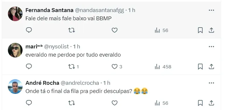 “Eu nunca critiquei Everaldo, ele tá me surpreendendo a cada jogo”, escreveu um torcedor. “Onde é o endereço de Everaldo? Vou mandar um telegrama falado pra ele pedindo desculpas”, brincou outro.