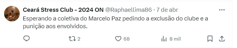 O funcionário agredido, que presta serviços de segurança ao Ceará, registrou um boletim de ocorrência na 16ª Delegacia de Polícia, no bairro Dias Macedo, após receber um chute na costela direita por parte do jogador adversário.