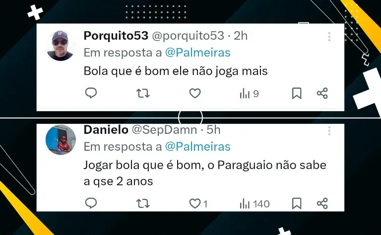 “Nosso elenco tem isso de, jogue quem jogar, sempre deixa tudo dentro do campo. Agora vai ser a mesma coisa. No domingo, temos um jogo muito importante em casa, um clássico, então temos que entrar focados primeiro neste jogo, fazer um bom jogo, conquistar esses três pontos que vão ser importantes para estar perto na luta pelo Brasileirão, e depois focar no que vai ser o jogo contra o Botafogo, porque a eliminatória está aberta.”, disse em entrevista à TV Palmeiras.