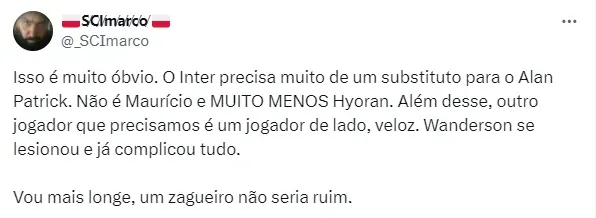 Com o empate, o Colorado está na sexta colocação do torneio nacional com sete pontos conquistados. A torcida nas redes sociais detonou Eduardo Coudet, e uma parcela vem pedindo a saída do treinador. O comandante em entrevista coletiva, rebateu as críticas e viu exagero nas cobranças.