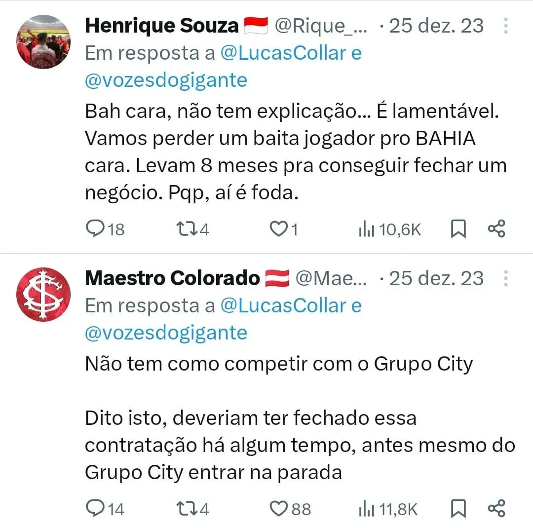 Em entrevista ao GE, o meia revelou o motivo pelo qual preteriu o Internacional e ainda admitiu que pode sofrer certa pressão para a partida, principalmente tendo em vista que os baianos não perderam a chance de alfinetar o Colorado no anuncio do volante, ao postar uma foto dele usando um chapéu.