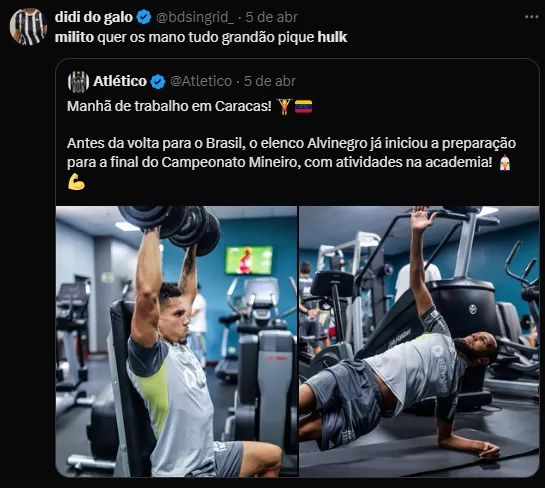 Hulk, o camisa 7 e uma figura de destaque no Galo, expressou sua admiração pelo novo treinador. Ele fez questão de se informar sobre Milito e recebeu feedback positivo de pessoas que o conheciam. Hulk elogiou a compreensão profunda de Milito sobre o futebol e a maneira como ele comunica suas estratégias à equipe.