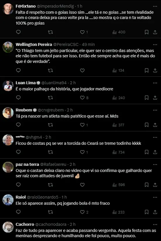 Galhardo, que jogou pelo Ceará em 2019, marcou 12 gols em 34 jogos naquela temporada. Depois de passar por outros clubes e vestir a camisa do Fortaleza, rival do Ceará, ele se transferiu para o Goiás.