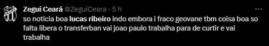 Ler mais: Ceará surpreende e toma decisão para assegurar permanência de David Ricardo