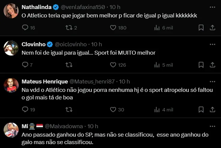 Em resumo, na última quarta-feira (22), jogando na Arena de Pernambuco, o Sport teve uma boa atuação, onde pressionou os mineiros. No entanto, venceu apenas por 1 a 0, o que não foi suficiente para seguir adiante na competição.