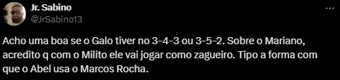 Ler mais: Hulk não titubeia e manda forte recado para torcida do Atlético-MG
