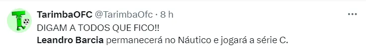 O Náutico oficializou a permanência do atacante Leandro Barcia em seu elenco para a disputa da Série C do Campeonato Brasileiro, dissipando assim todas as especulações sobre uma possível saída do jogador uruguaio.