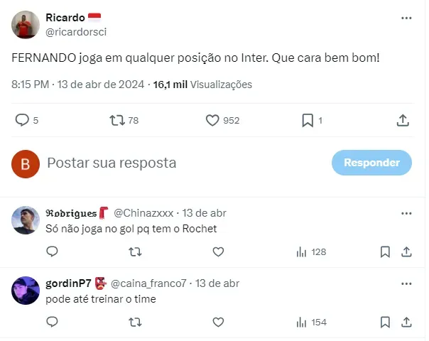 Nas redes sociais a torcida do Colorado vibrou com a lei do ex, feita pela atacante do Inter sobre o seu ex-clube. A partida também contou com o retorno de Robert Renan, que foi relacionado para o duelo após polêmica da ‘cavadinha’, que entrou aos 33 do segundo tempo.