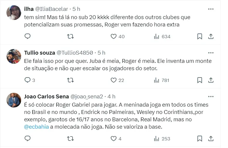 “Com Everaldo a gente tem mais força, com Biel mais velocidade. É esse tipo de análise que a gente faz para ser mais competitivo”, completou o técnico. O Bahia também tem contado com o reforço de Carlos De Pena.