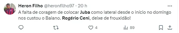 Nas redes sociais, apesar da vitória e o avanço para a próxima fase, a torcida do Esquadrão de Aço pediu a saída de Rogério Ceni pela primeira etapa abaixo do esperado. A torcida não está com paciência com o treinador.