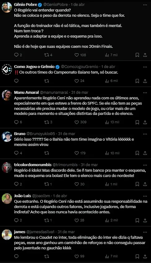 Ceni expressou preocupações com a falta de opções para o meio-campo. “Dentro do modelo de jogo que a gente construiu, muito bem treinado, futebol prazeroso de se ver, em determinado minuto, quando o cansaço bate, a gente sofre mais que o normal”, disse ele.