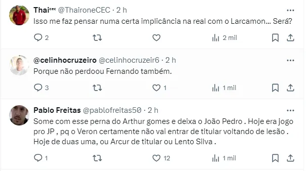 Leia mais: Pedro Lourenço afirma que ajudará o Cruzeiro a comprar Matheus Pereira