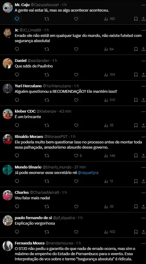 Além disso, o Sport Club do Recife reiterou suas próprias medidas de segurança, incluindo a contratação de agentes de segurança privados para atuar no estádio e nas proximidades do local do jogo.